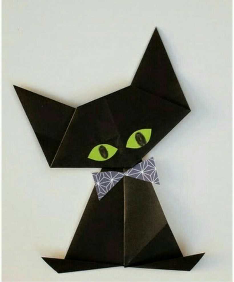 Черная кошка из бумаги в технике оригами своими руками готова!
