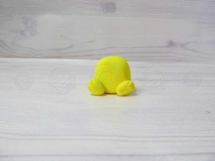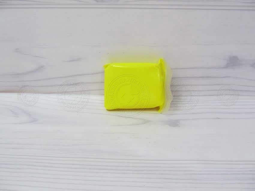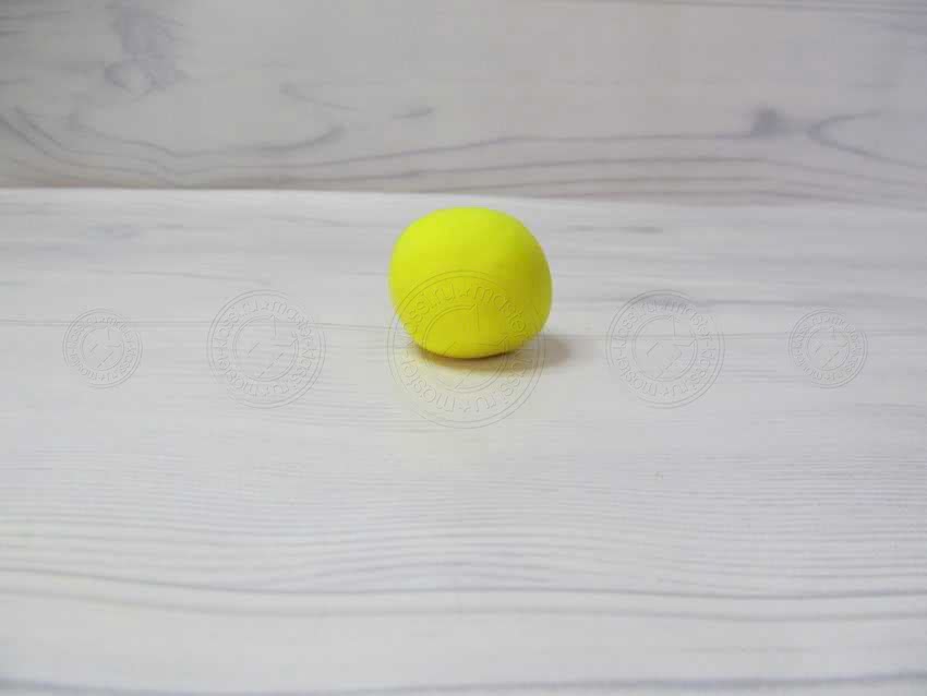 1. Возьмите желтый кусок пластилина и положите его перед собой. Данный цвет встречается повсеместно практически в любой коробке в том, или иной оттенке. Он относится к самым популярным, с которым часто работают.