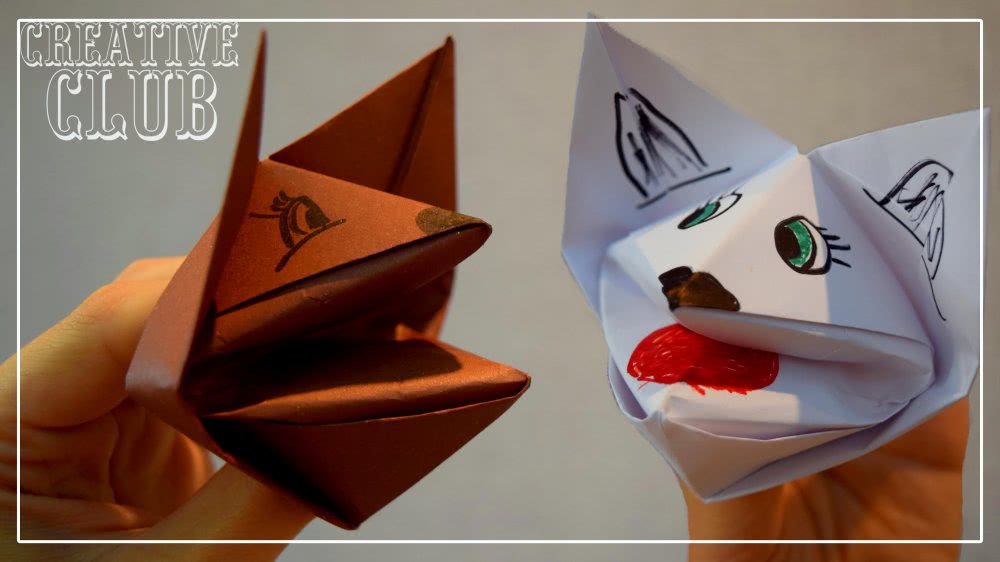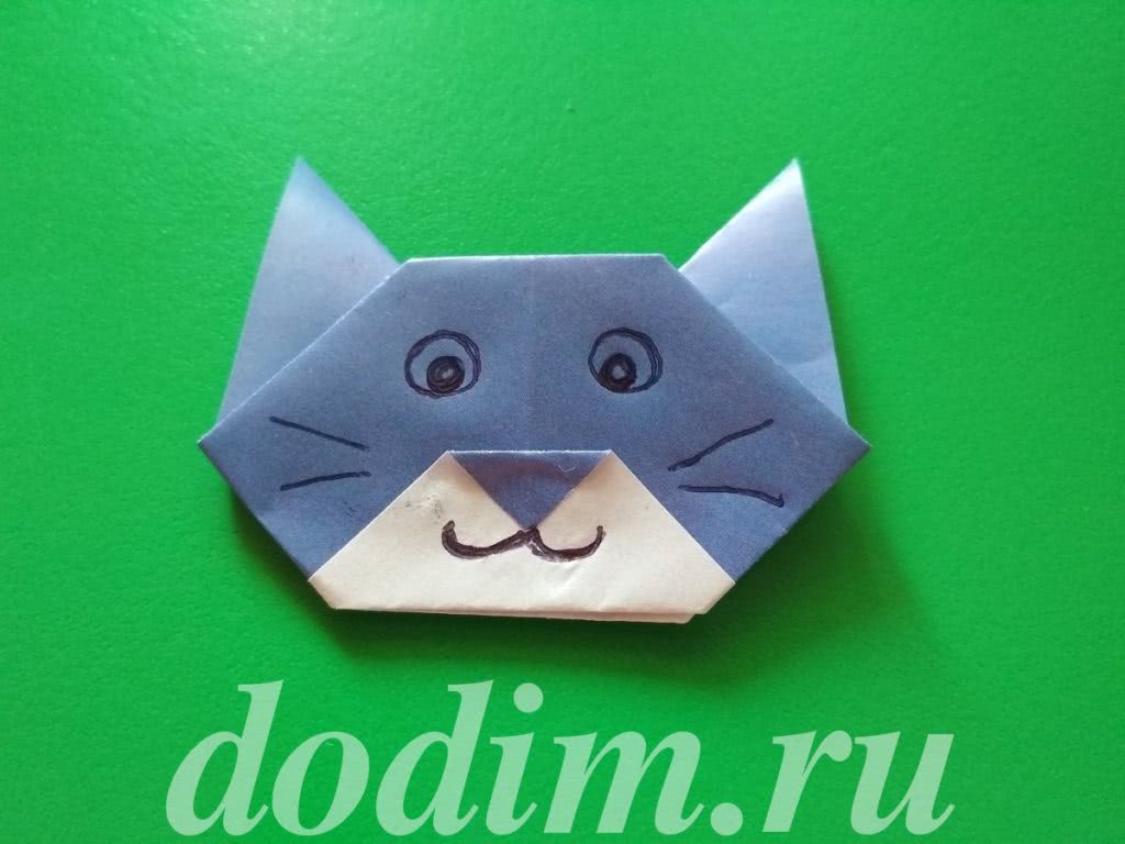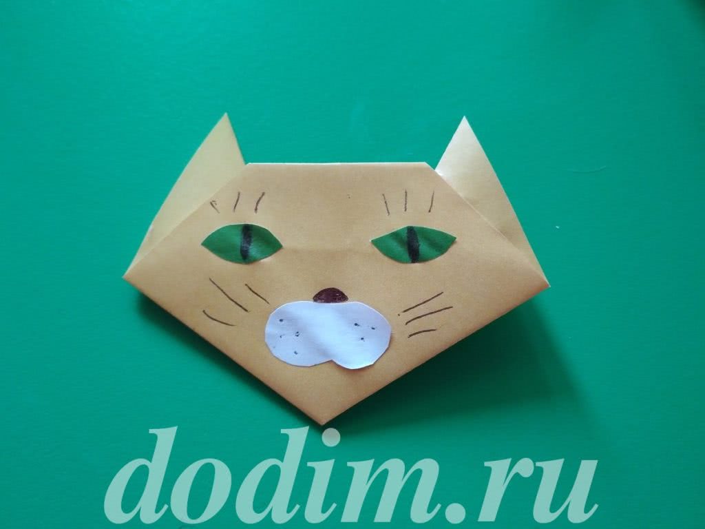 После хищников хочется сделать какую-то милую поделку. Поэтому будет уместно описать порядок сборки котика-оригами из бумаги.