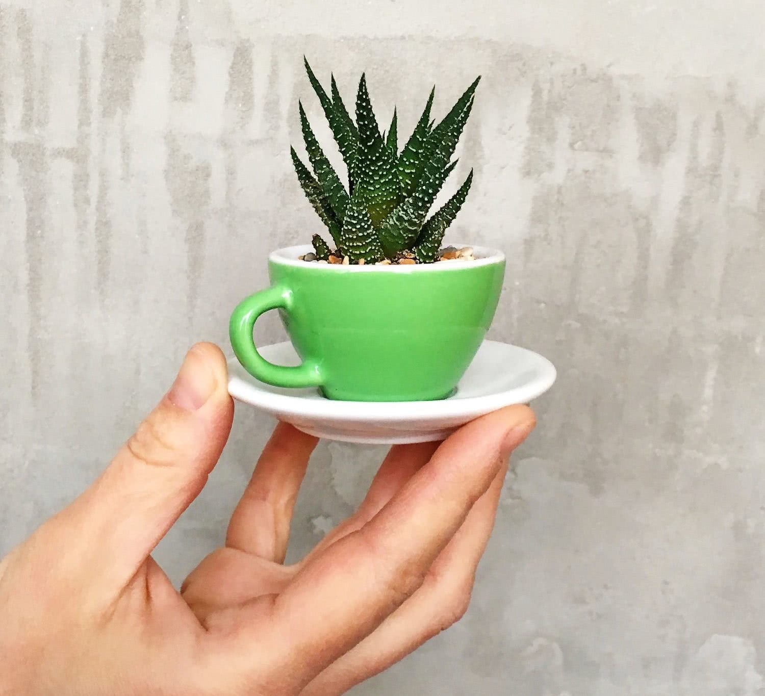 Получается двойной подарок — комнатное растение и красивая чашка. Такой оригинальный вариант понравится не только любителям комнатных растений, но и всем, кто заботится о собственном быте, его эстетике и удобстве.