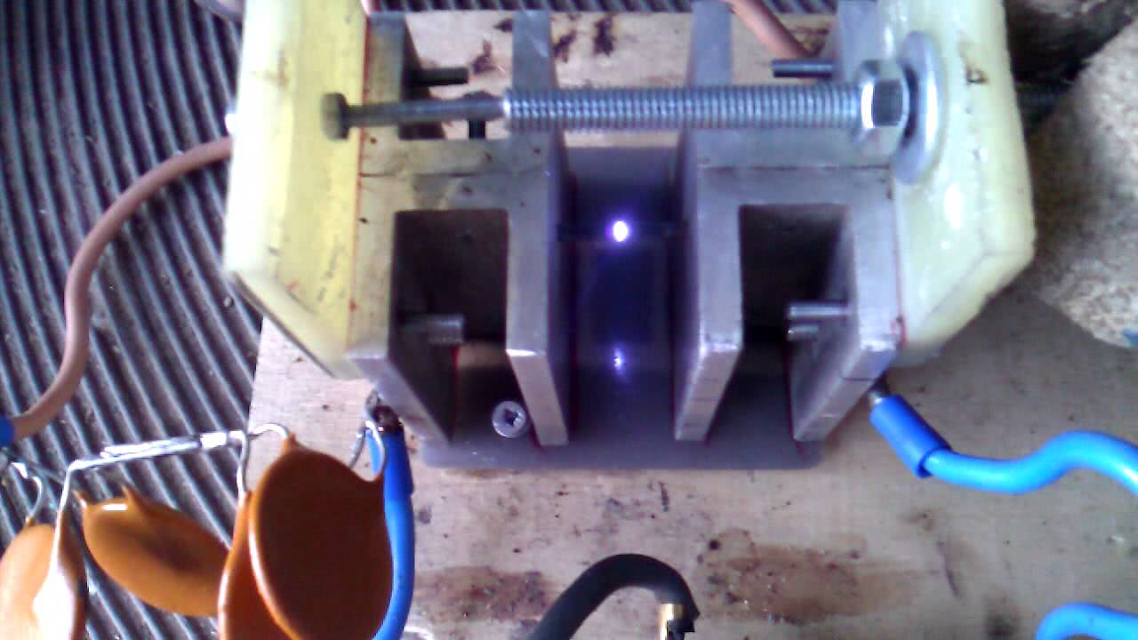 Разрядник изготавливают из двух медных вертикальных стержней, на которые крепятся вольфрамовые прутки для передачи тока. Рекомендуется залить медные стойки диэлектрическим затвердевающим составом, предварительно подведя к ним провода для контактов. Возможна сборка осциллятора на основе катушки зажигания, только после нее в схему необходимо установить ВВ диод и идущий за ним конденсатор. Потом следует поставить разрядник, подсоединенный к первичной обмотке трансформатора.