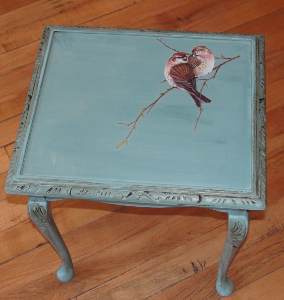 - одно из модных увлечений – декупаж, также используют для декора столешницы. Сверху покрывают матовым, глянцевым лаком, или нанести кракелюр. Такой вариант отделки подойдет для стиля прованс, дамского будуара или классического интерьера;