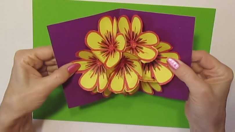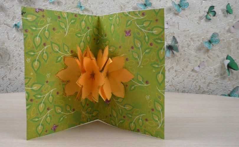 Сама открытка с цветами 3д своими руками собирается по следующему алгоритму: