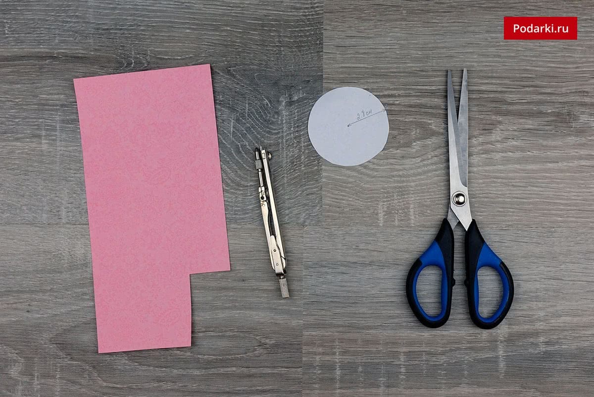 Самый маленький шаблон переносим на бумагу розового цвета и вырезаем круг.