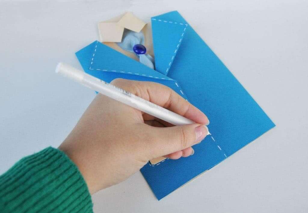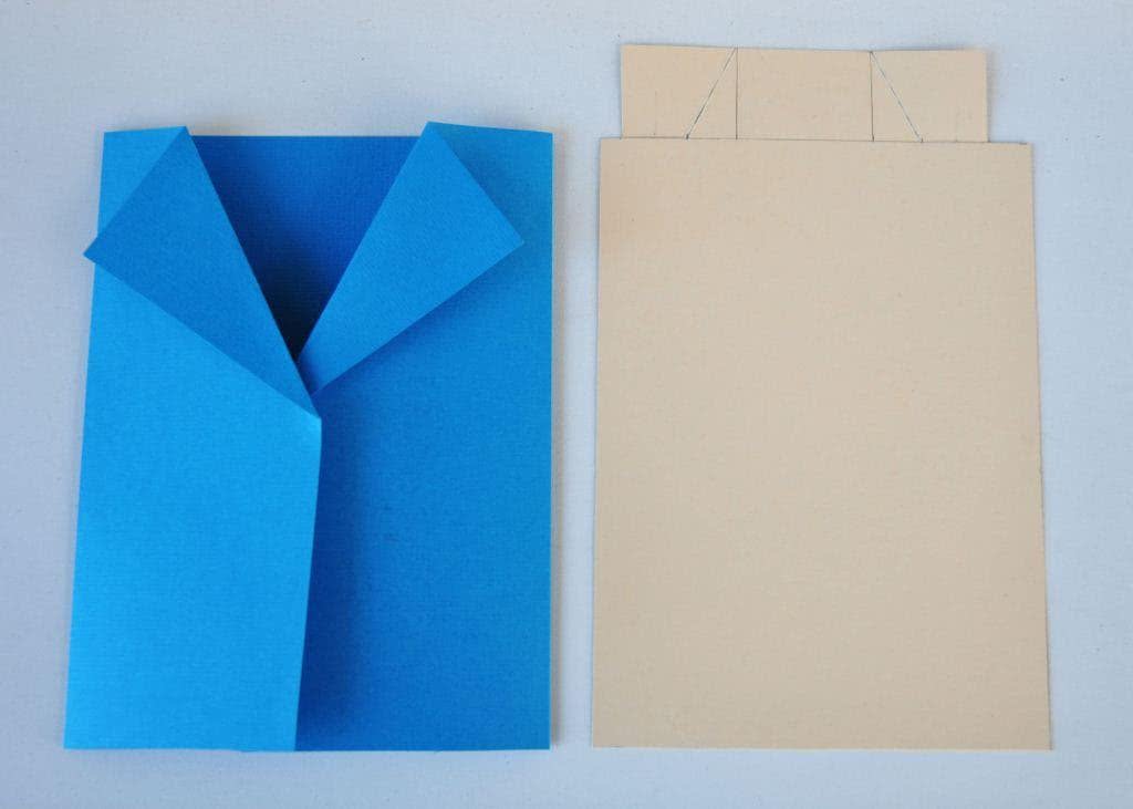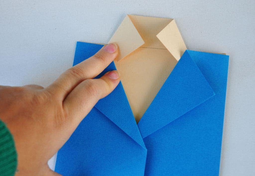 - На свернутых частях листа воротник сгибается таким образом, чтобы он не выходил за пределы открытки;