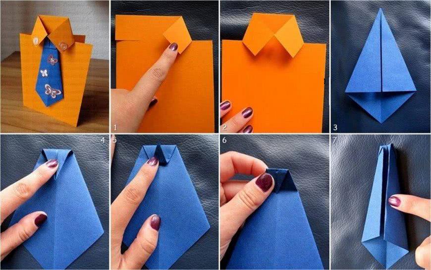 - Нижний уголок сгибается в несколько раз для получения «галстука»;