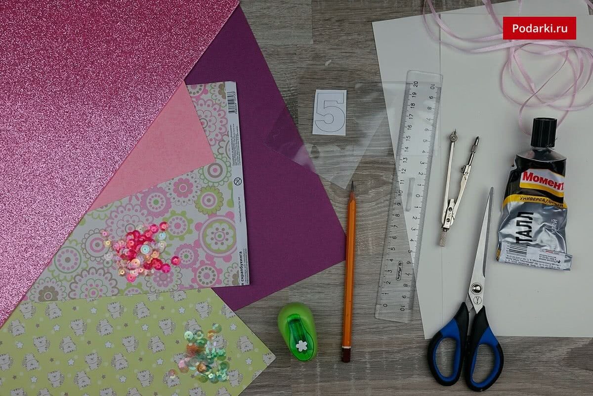 Чтобы сделать милую открытку для девочки, подготовим такие материалы: