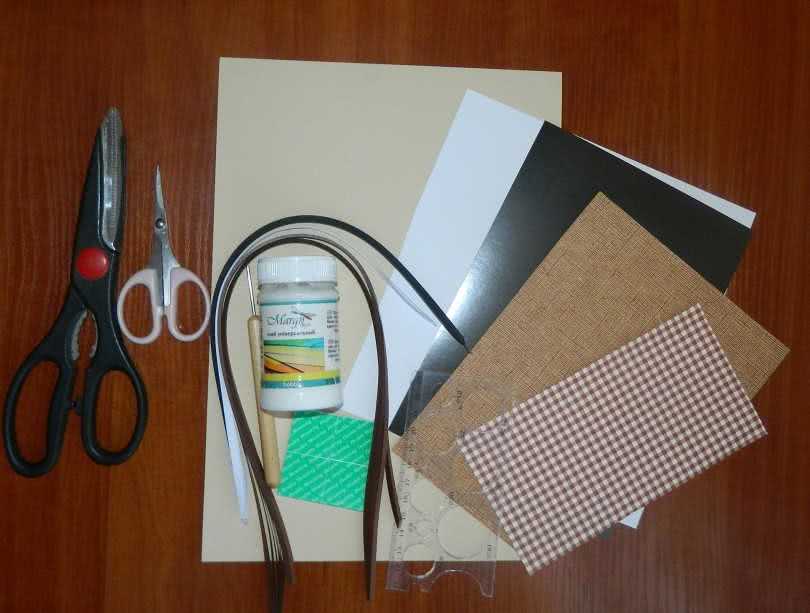 Инструменты для работы — их великое множество. Простые и фигурные ножницы, резак, фигурный дырокол — оформят изделие нестандартно. Для деликатной работы потребуется пинцет.