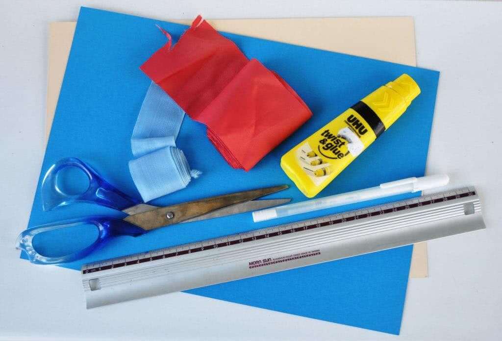 Для создания открытки с тканью потребуется такой же состав из инструментов и фурнитуры. Единственное что необходимо добавить это разные типы ткани.