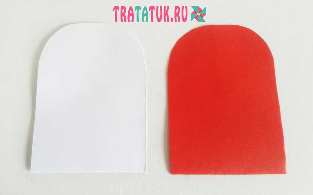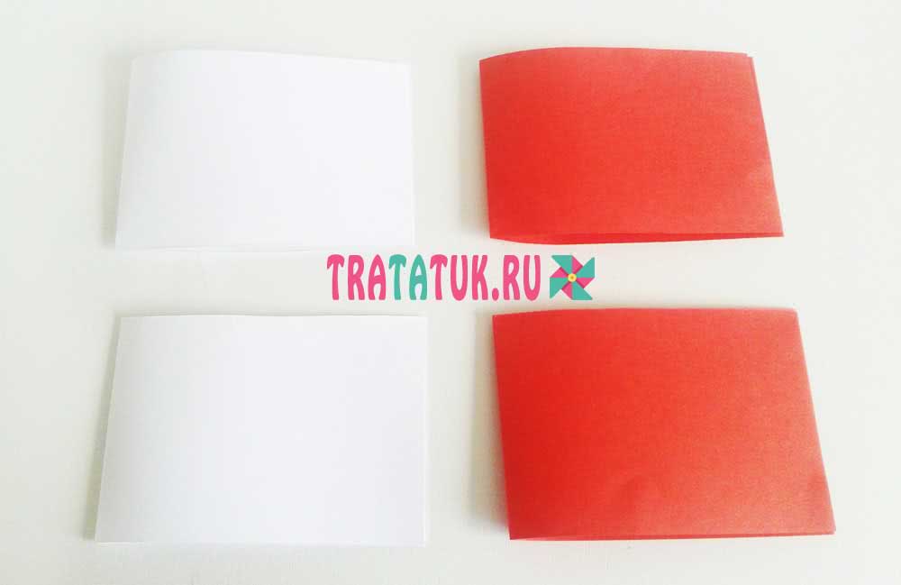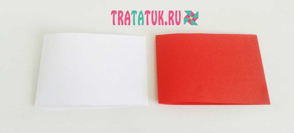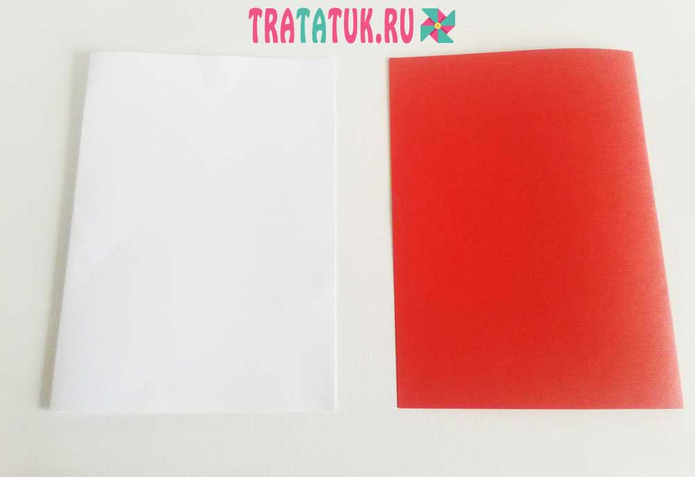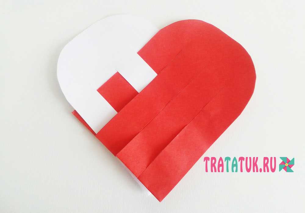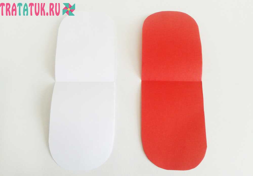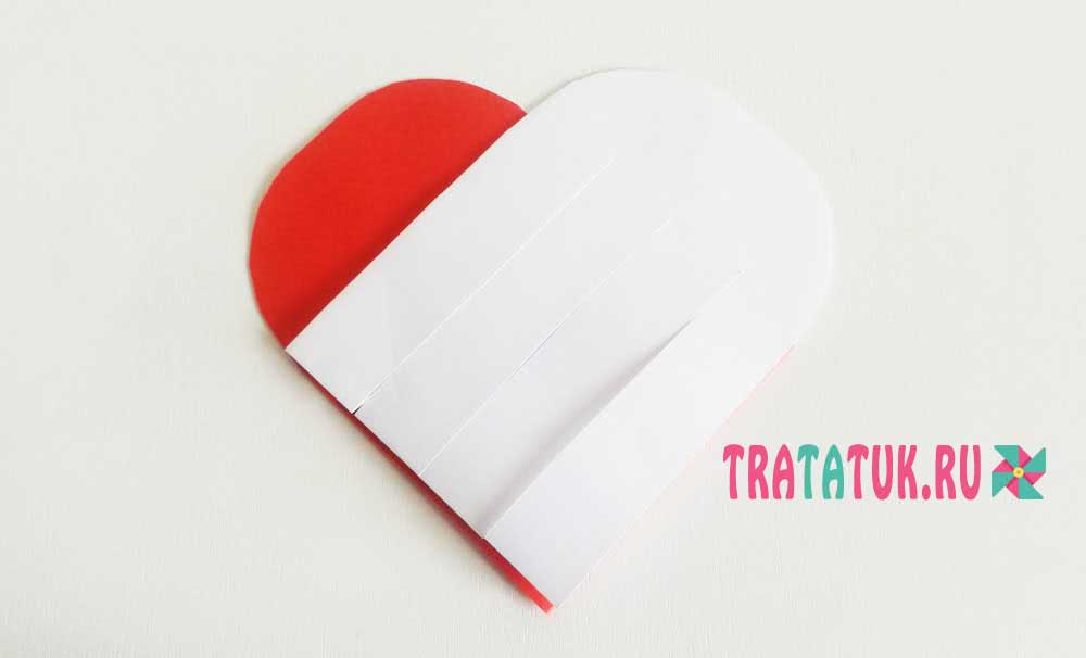 Положите красную и белую бумаги одна на другую так, чтобы образовалось сердечко, то есть, закругленными сторонами вверх.