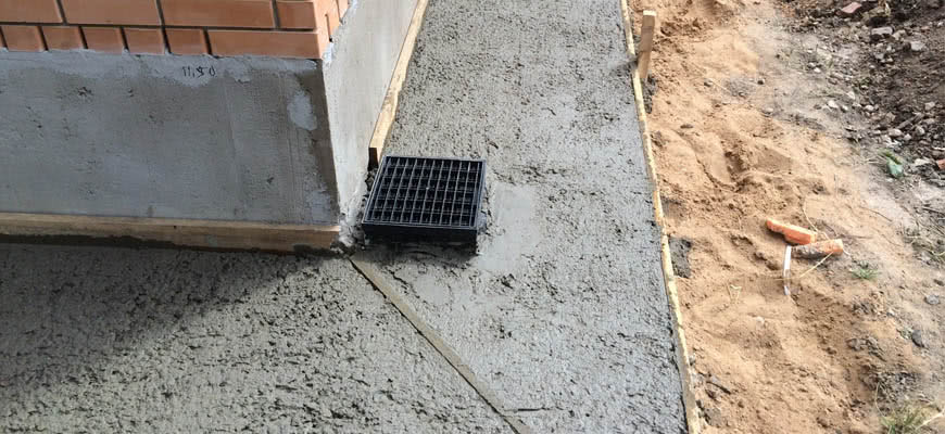 Ленточная площадка вокруг строения должна соответствовать строительным нормам и правилам. При этом, конструкция должна органично вписываться в дизайн самого здания и окружающего ландшафта. К отмосткам предъявляются следующие требования: