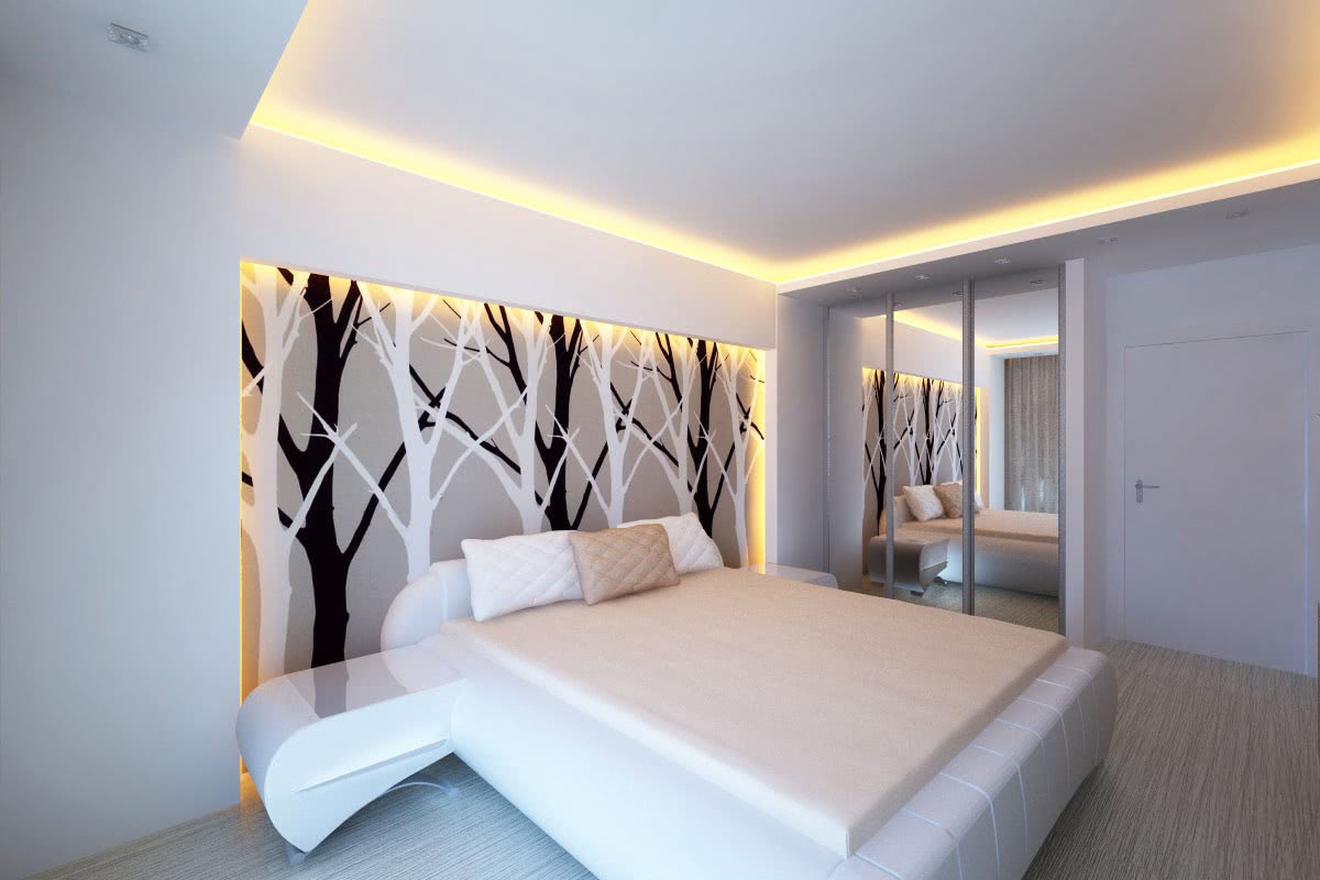 - подсветка, расположенная по периметру комнаты, делает ее более уютной, без острых углов.
