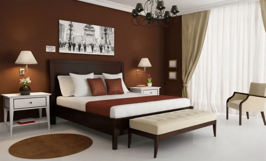 Светлые оттенки сепии подходят для спальни, в сочетании с теплыми коричневым (мебель) и белым создают ощущение некоторой отрешенности.