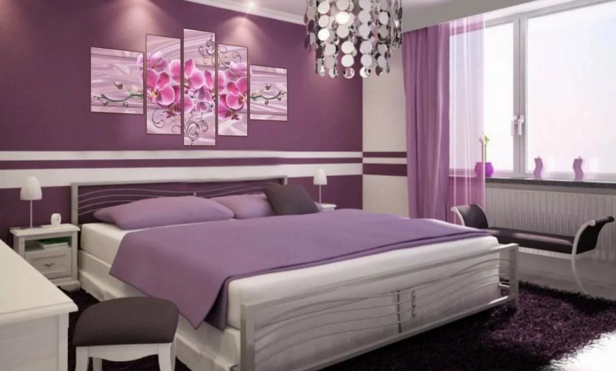 Можно в одной комнате сочетать сразу несколько родственных оттенков это тона, но главное не перебарщивать. Оптимально, если базой является белый, серый или бежевый, а фиолетовый используется как яркое дополнение.