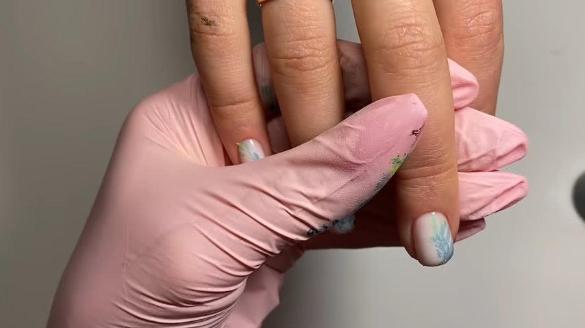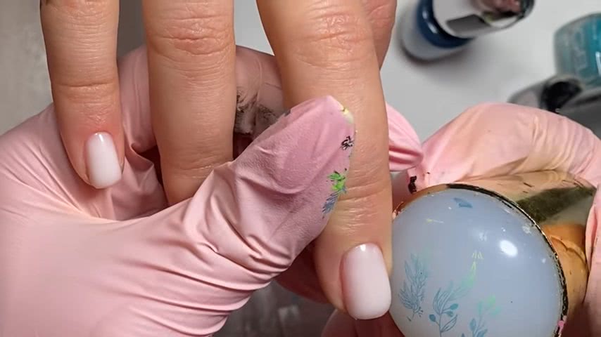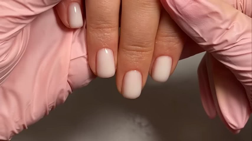 2. Оставшиеся ногти покрасить в молочный оттенок;