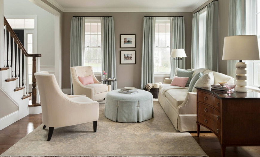 Цветовая гамма красок, рекомендуемая признанными дизайнерами интерьеров, подходит для помещений различного назначения. Характерным для нее является использование нейтральных оттенков, позволяющих изменять настроение помещения и вносить корректировку за счет цветовых акцентов.