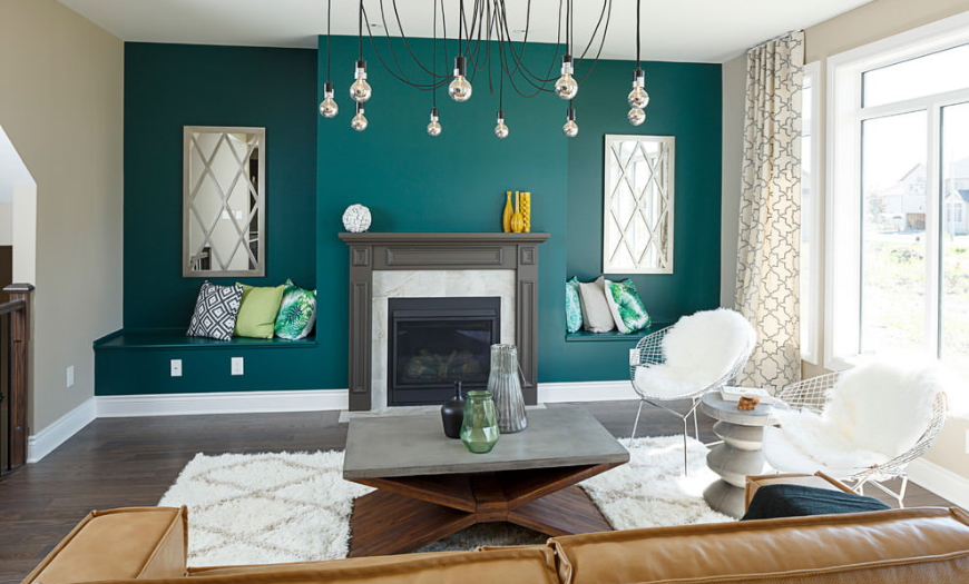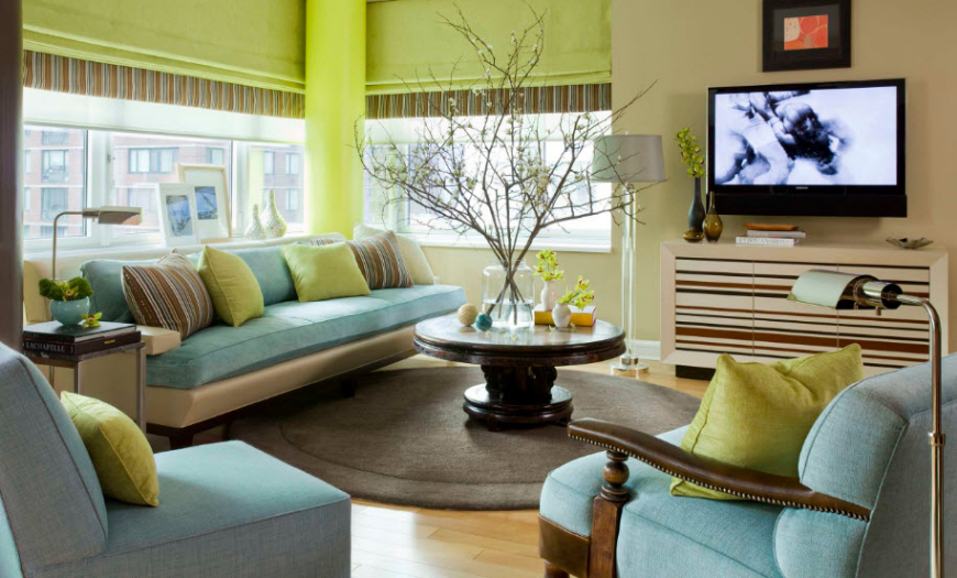 Бирюза вступает в гармонию со многими цветами, позволяя воплощать необычные дизайнерские решения. С ней красиво смотрятся и пастельные (белый, бежевый, голубой), и сочные оттенки (красный, фиолетовый, зеленый) тона.