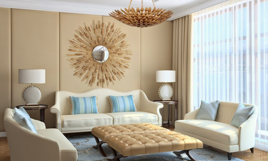 Светлые оттенки хорошо обыгрываются в фактурных контрастах, например, матовые поверхности стен и ткань с крупным рельефным рисунком. Это цвет, изменяющийся в зависимости от оттенка или другого выбранного цвета, с которым он сочетается.