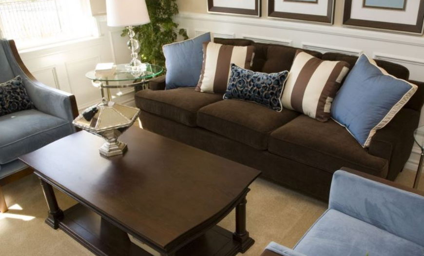 Стены кремового цвета идеально сочетаются с темной мебелью