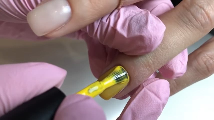 1. Покрыть несколько ногтей молочно-желтым цветом;