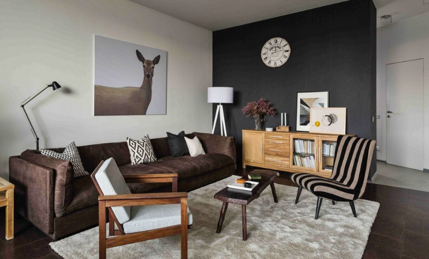 Не нужно делать оформление помещения в одних только коричневых оттенках, иначе будет выглядеть скучным.