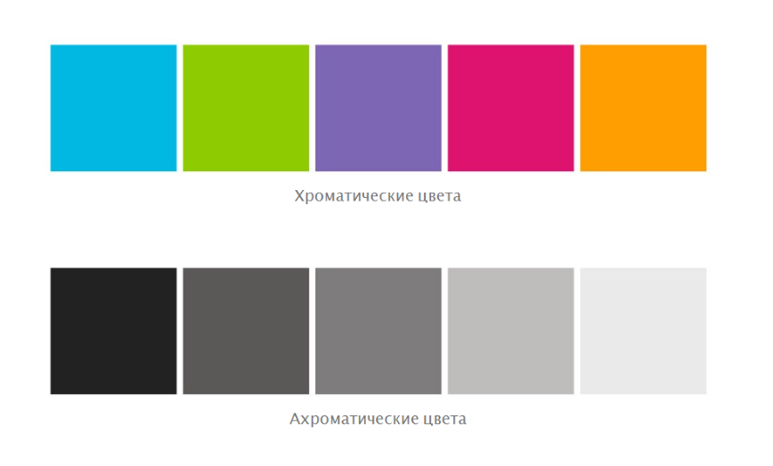 - Ахроматические цвета: не имеют цветного пигмента (белый, серый, черный).