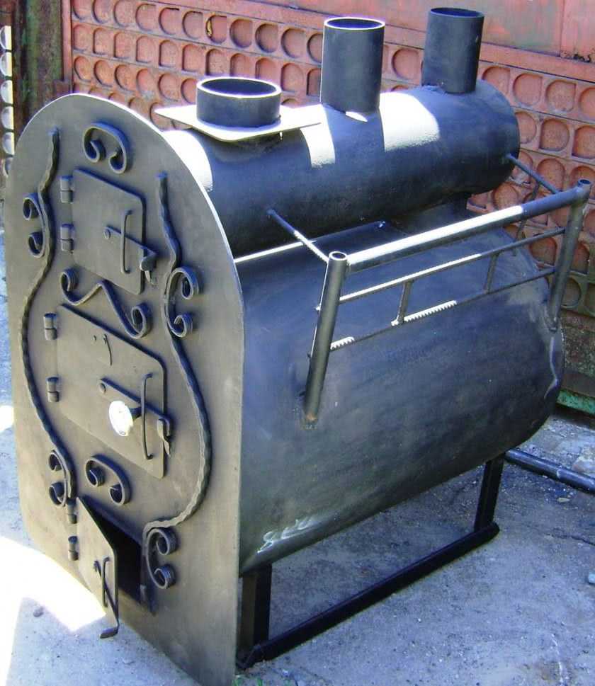 Такие печи можно заказать готовыми с завода, равно как и построить собственными руками. Для изготовления хорошо подходят стальные листы. Можно использовать большие разрезанные трубы.