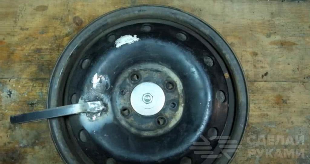 На втором диске необходимо заварить главное центральное отверстие, для чего потребуется небольшой кусок толстого металла.