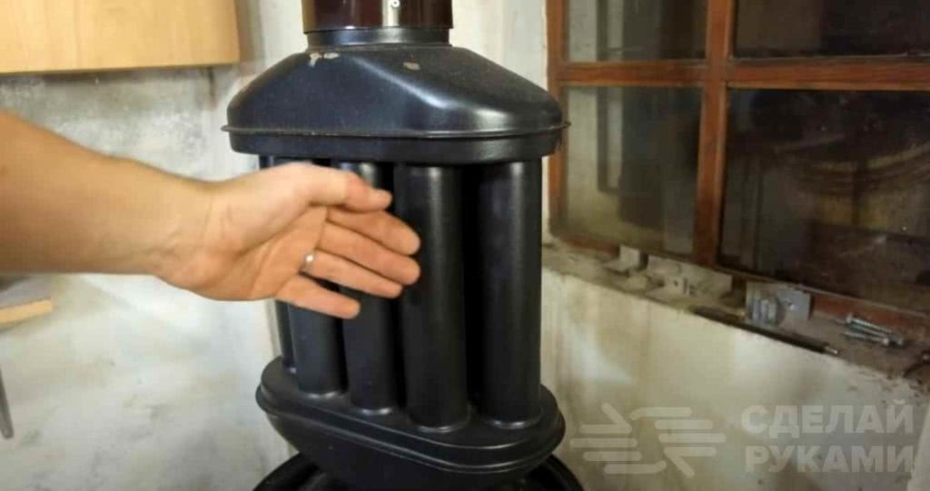 вырезать на верхней поверхности прибора круглое отверстие под дымоотвод;