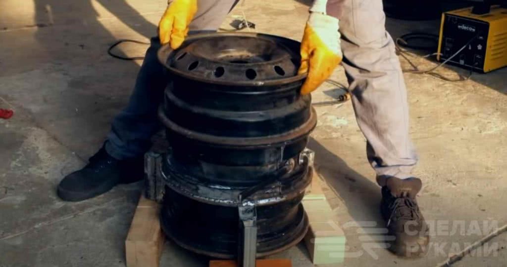 При самостоятельном изготовлении печи из дисков нужно соблюдать следующую последовательность действий: