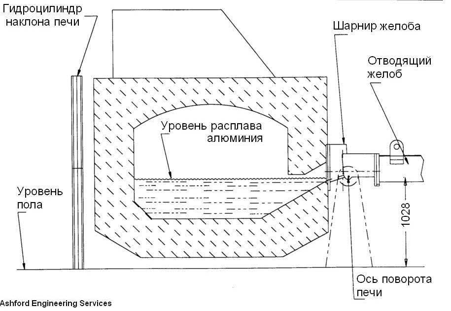 Печь для плавления и разливки алюминия может быть стационарной или наклоняемой.