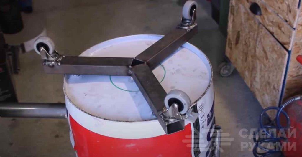 К основанию бочки приваривается крестовина из профильной трубы, к которой крепятся колесики.