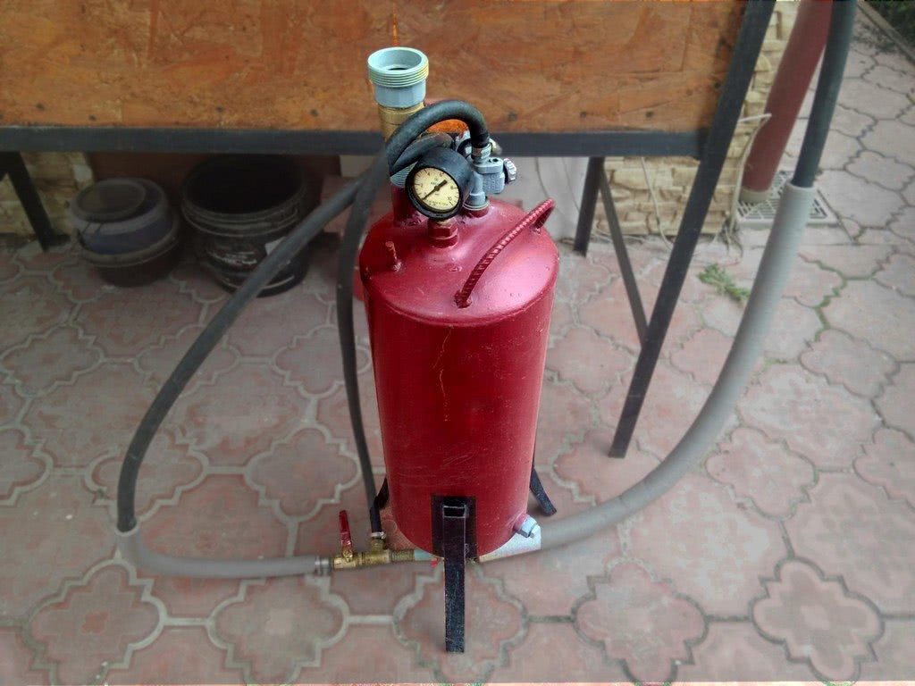 Теперь перейдем к рассмотрению непосредственного процесса создания пескоструйного аппарата из огнетушителя. Он осуществляется следующим образом: