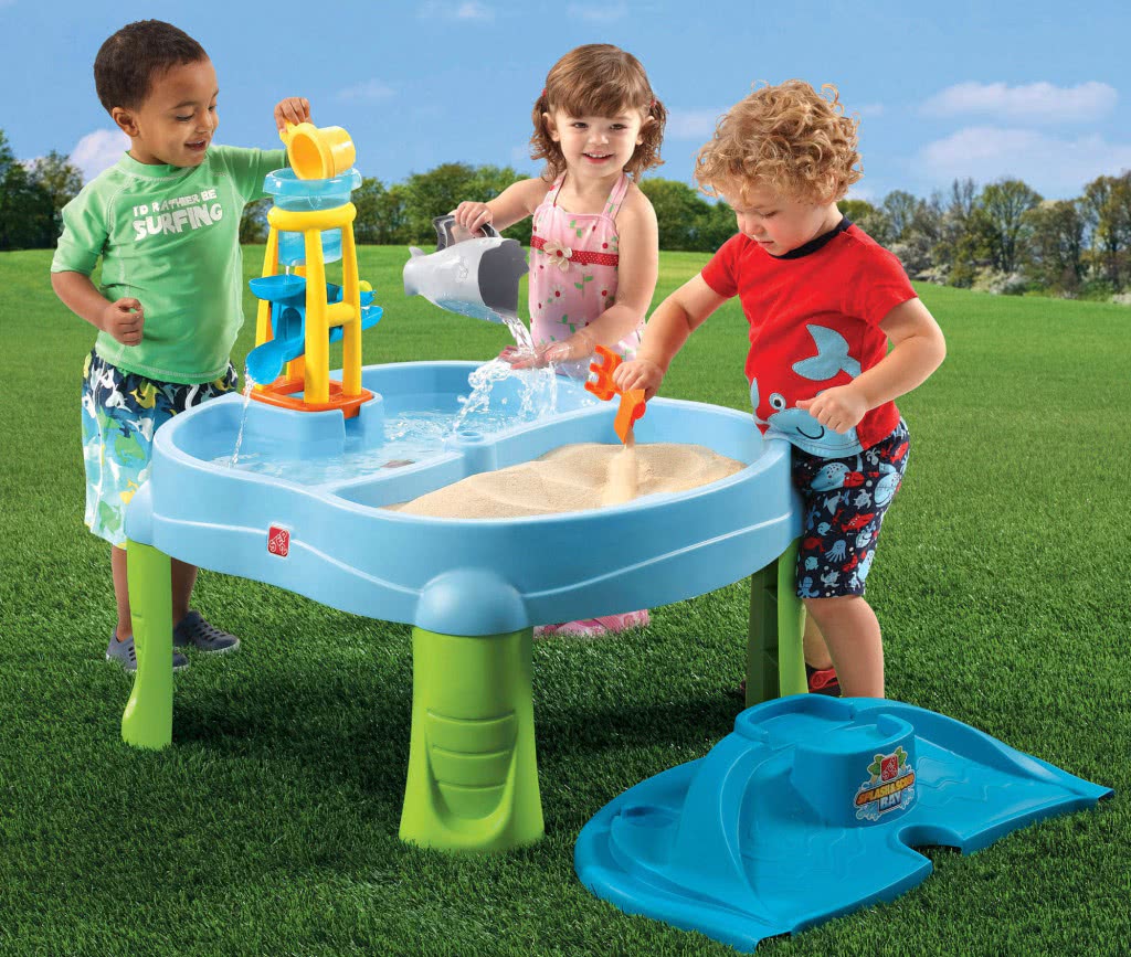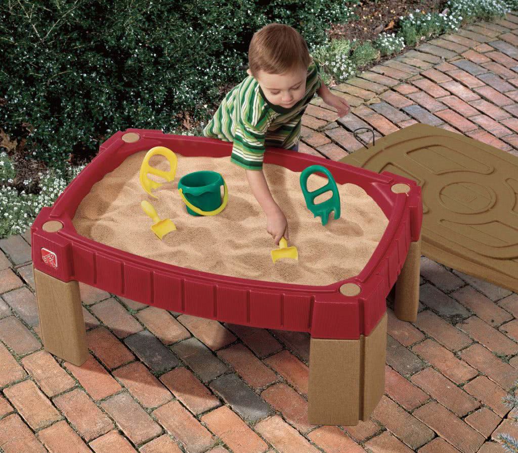 Можно вовсе обойтись без строительства, выбрав готовый стол-песочницу – полноценный игровой центр, отличающийся от обычного стола конструкцией столешницы. В данном случае это пластиковый или деревянный поддон с песком, заменяющий привычную песочницу.