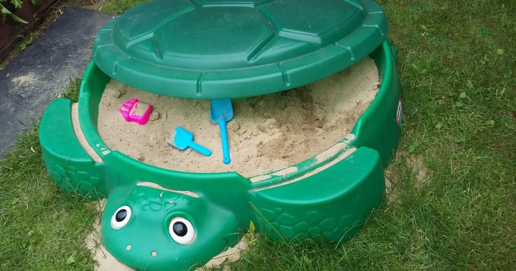 - Чтобы наполнить конструкцию, принесите в песочницу немного крупнозернистого речного песка до 900 килограмм. Песок необходимо очистить от грязи и просеять, прежде чем ребенок сможет с ним играть.