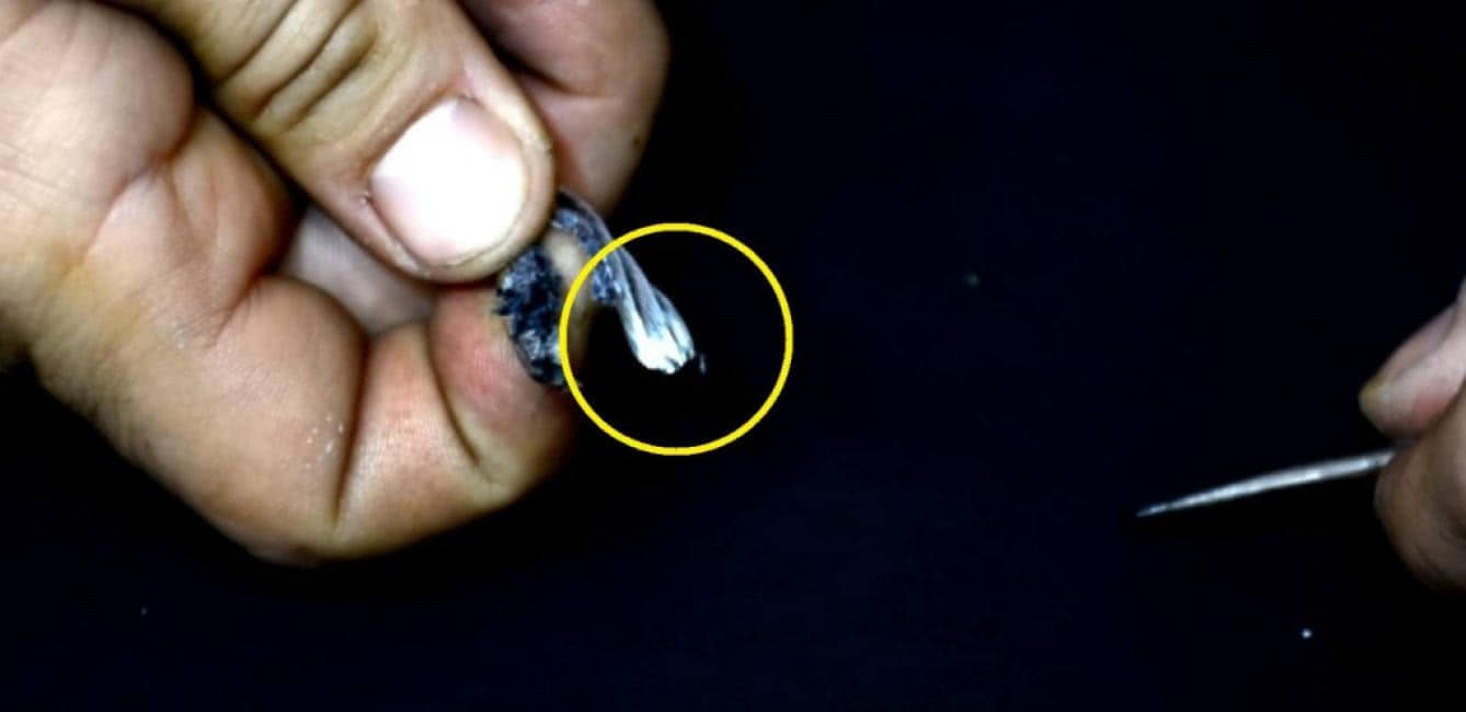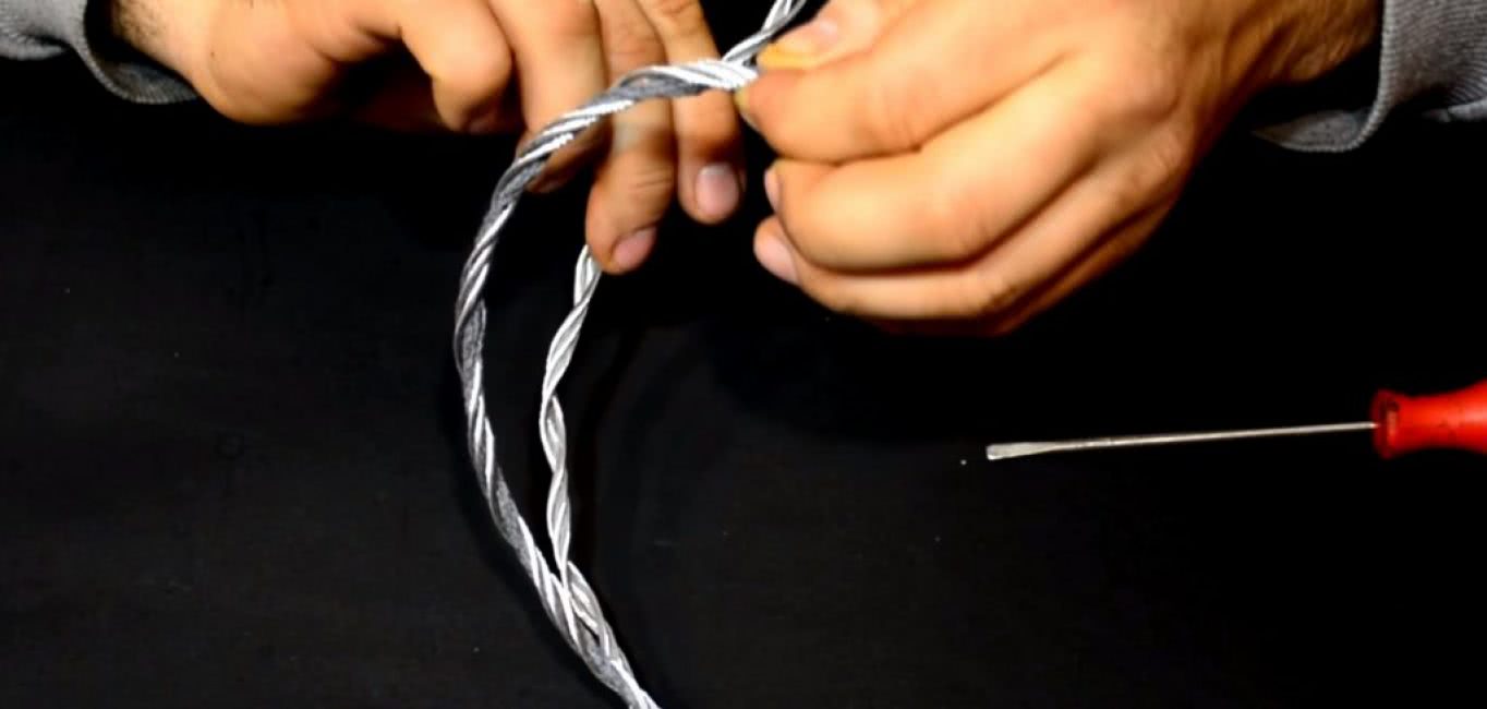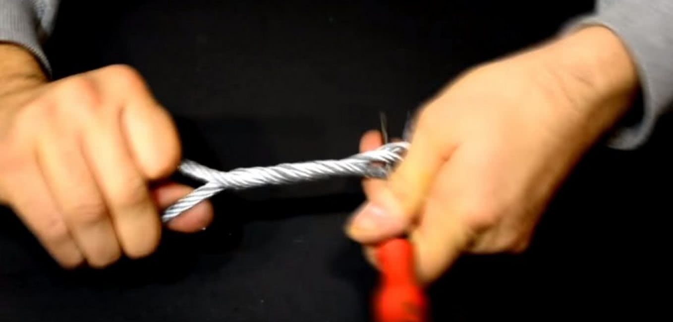 Трос необходимо расплести от его конца до сделанной отметки при помощи отвёртки. Сделать это достаточно просто. Обычно, трос состоит и 6 сплетённых нитей.