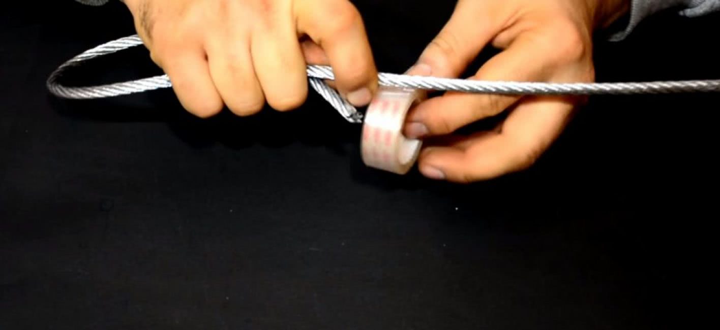 Сначала необходимо прикинуть примерные размеры петли, согнув конец троса и отметив место его контакта с тросом. Сделать это можно при помощи скотча или изоляции.