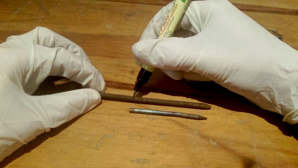 Перед тем как приступить к кропотливой работе по обработке ногтя до нужного размера, определите необходимую длину будущего кончика. Старым наконечником паяльника отметьте маркером или писцом примерную длину ногтя (лучше всего растянуть кусок — всегда можно отрезать лишнее). Зажмите гвоздь в тисках и подпилите ножовкой по металлу (будьте осторожны, гвоздь в процессе резки перегревается и может вызвать ожоги).