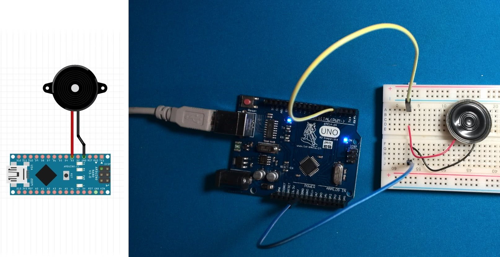 Схема подключения пьезоэлемента (динамика) на Arduino