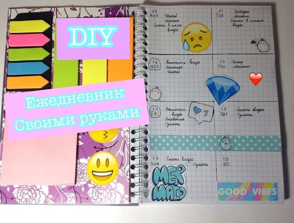 Вместо тетради можно использовать покупной ежедневник, заполнить, украсив его обложку и оформляя записи оригинальным способом.