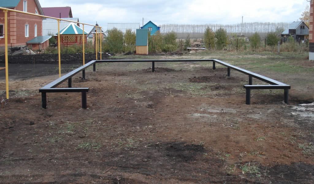 Строительство начинается с подготовки и разметки территории. Для начала участок грунта разравнивается, убираются все деревья и кустарники. Потом при помощи колышек делают разметку. Далее приступаете к подготовке котлована. Он должен быть на 0,3-0,5 метра шире предполагаемой основы.