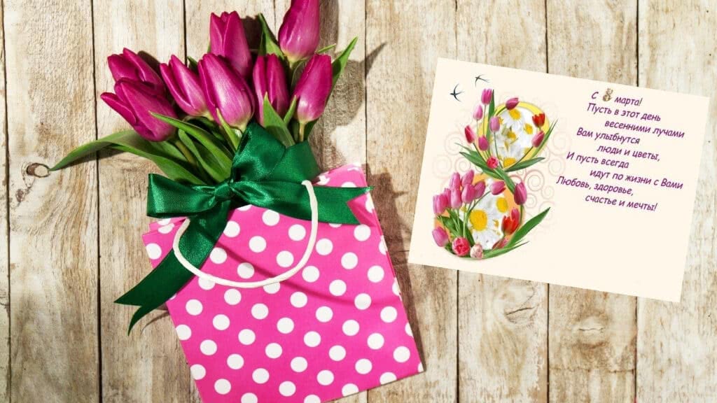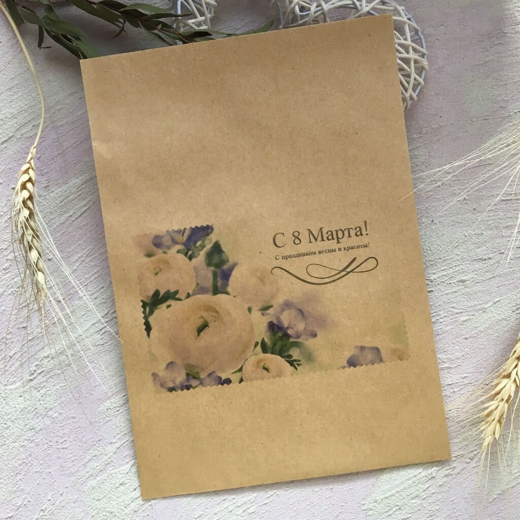 При наличии фантазии, даже из столь скромного материала можно сделать интересную обертку для весеннего подарка.