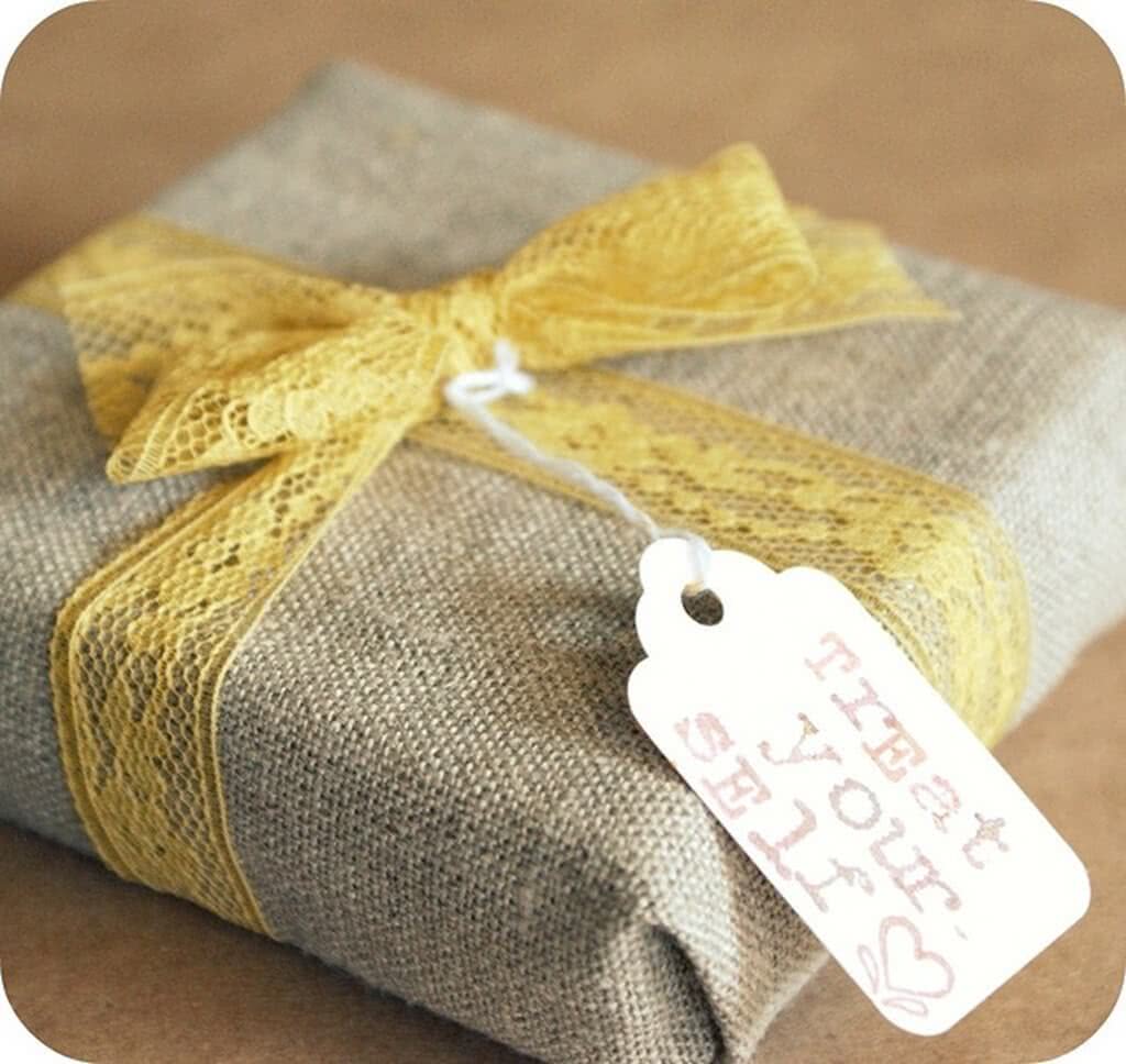 Ткань можно использовать как замену подарочной бумаге: это более экологично (упаковку можно будет использовать повторно) и выглядит достаточно необычно.