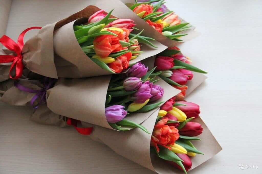 В крафт-бумагу упаковывают не только подарки, но и букеты. Здесь сами цветы выступают в роли нежного контраста. Такая обертка лишь подчеркивает хрупкость бутонов и лепестков.