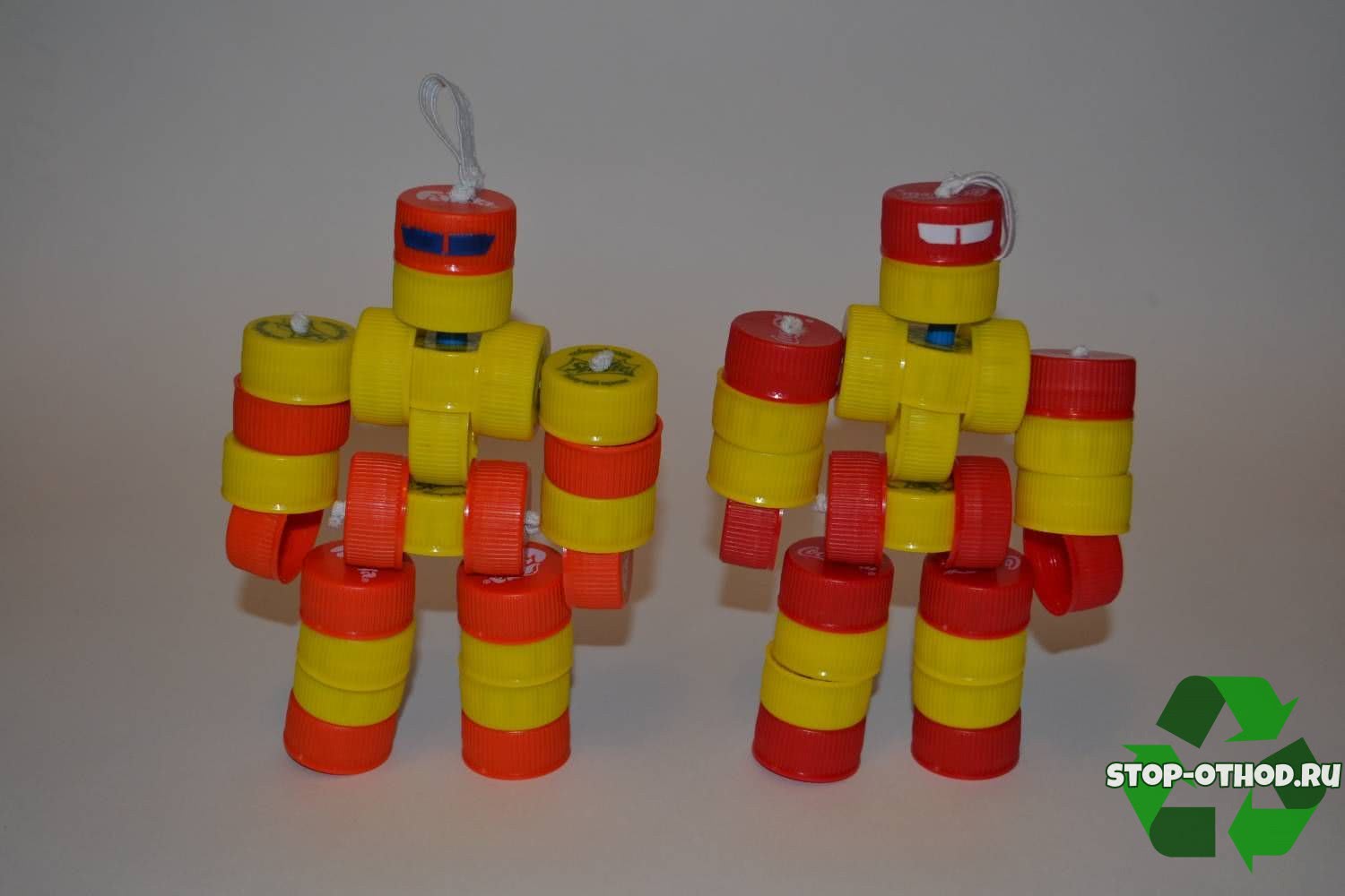 Как из пластиковых, так и из жестяных крышек из-под бутылок получаются классные детские игрушки — роботы, трансформеры, космонавты, железные человечки и фигурки животных.