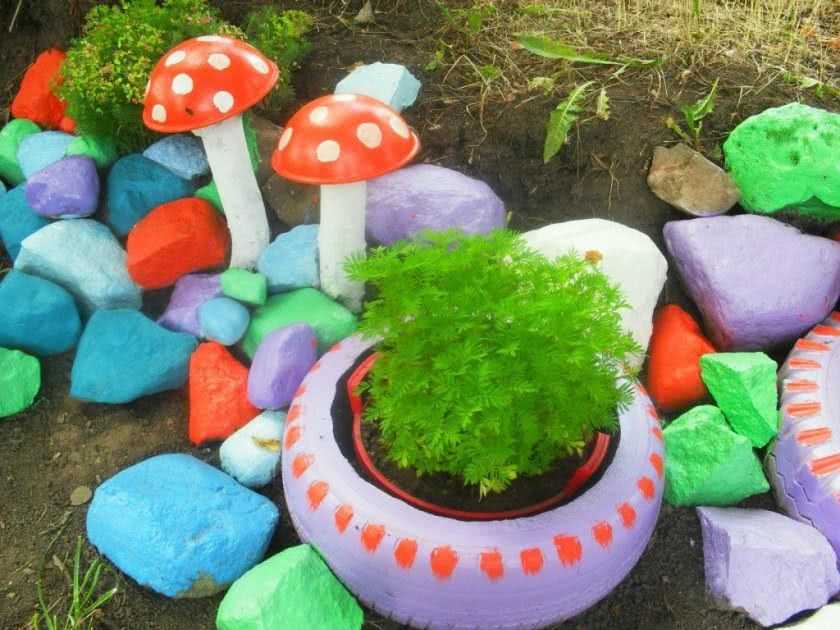 Достаточно легкий по сравнению с сидением проект – клумба из шин. Здесь все просто:
