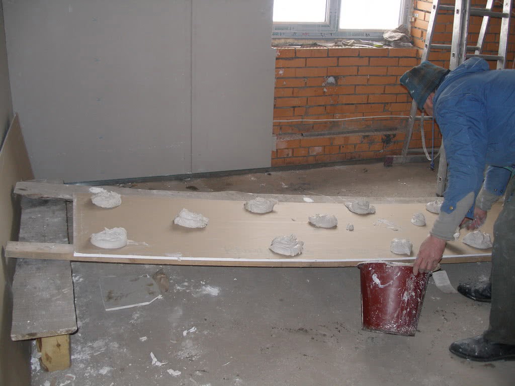 - Укладка плитки на пол с предварительной укладкой плит ГВЛВ