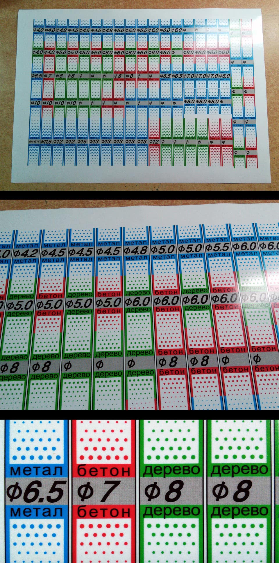 Для удобства на поверхности обоих видов можно наклеить бумагу с перечисленными диаметрами и типами инструментов (например, так: 0,8; 1,3; 2,7; 3,2; 3,6 – по металлу).