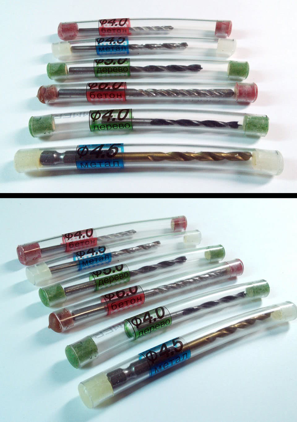 • Результат Когда всё готово — нарезаем шланги и пакуем сверла, клеим наклейки.