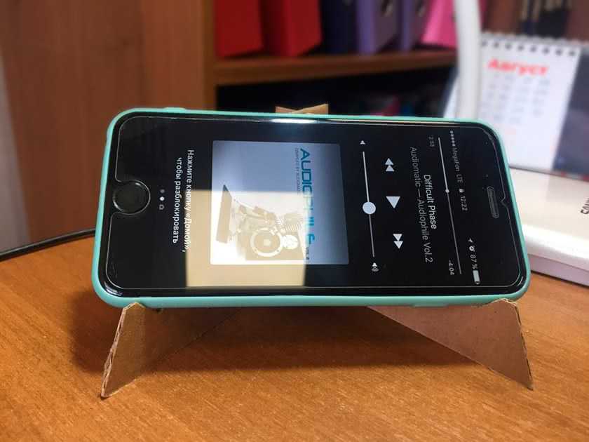 Не самый практичный, но один из самых распространенных вариантов – подставка для айфона, подготовленная в виде оригами из плотной бумаги либо картона. Возможно сказать – это одноразовый вариант, но одновременно с этим бумага – это то, что практически в любое время под рукой. Очень изощренные юзеры кроме того применяют в этих целях финансовые купюры.